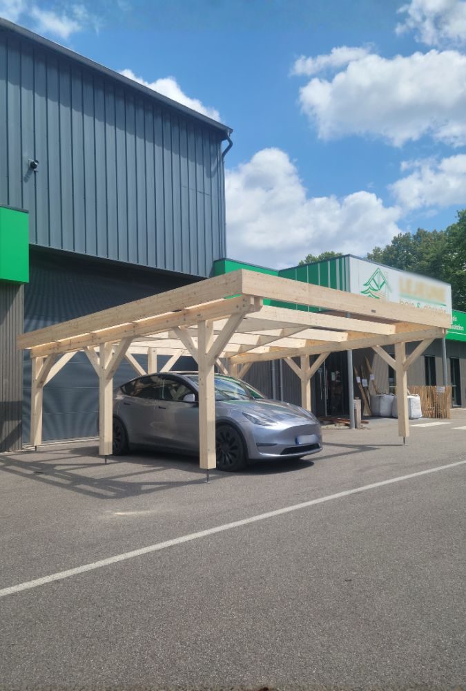 Stabilité parfaite et longévité exceptionnelle de ton carport bois grâce à l'utilisation exclusivement du lamellé-collé.